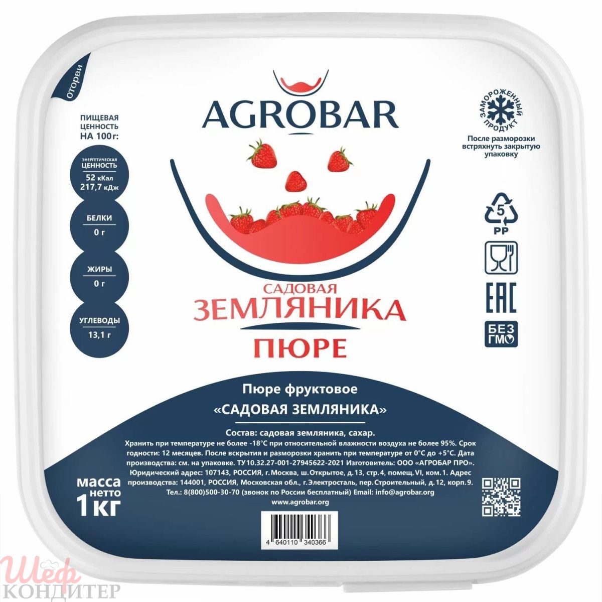 ПЮРЕ фруктовое Земляника садова с/м 1 кг "Агробар"