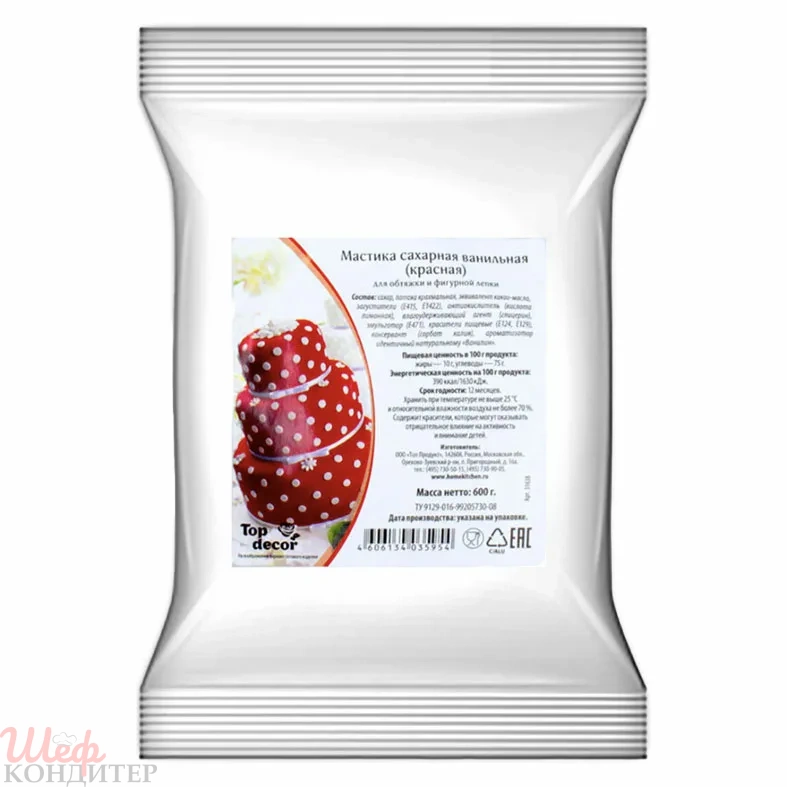 Мастика красная 600гр. Top Decor - Купить в интернет-магазине Шеф Кондитер