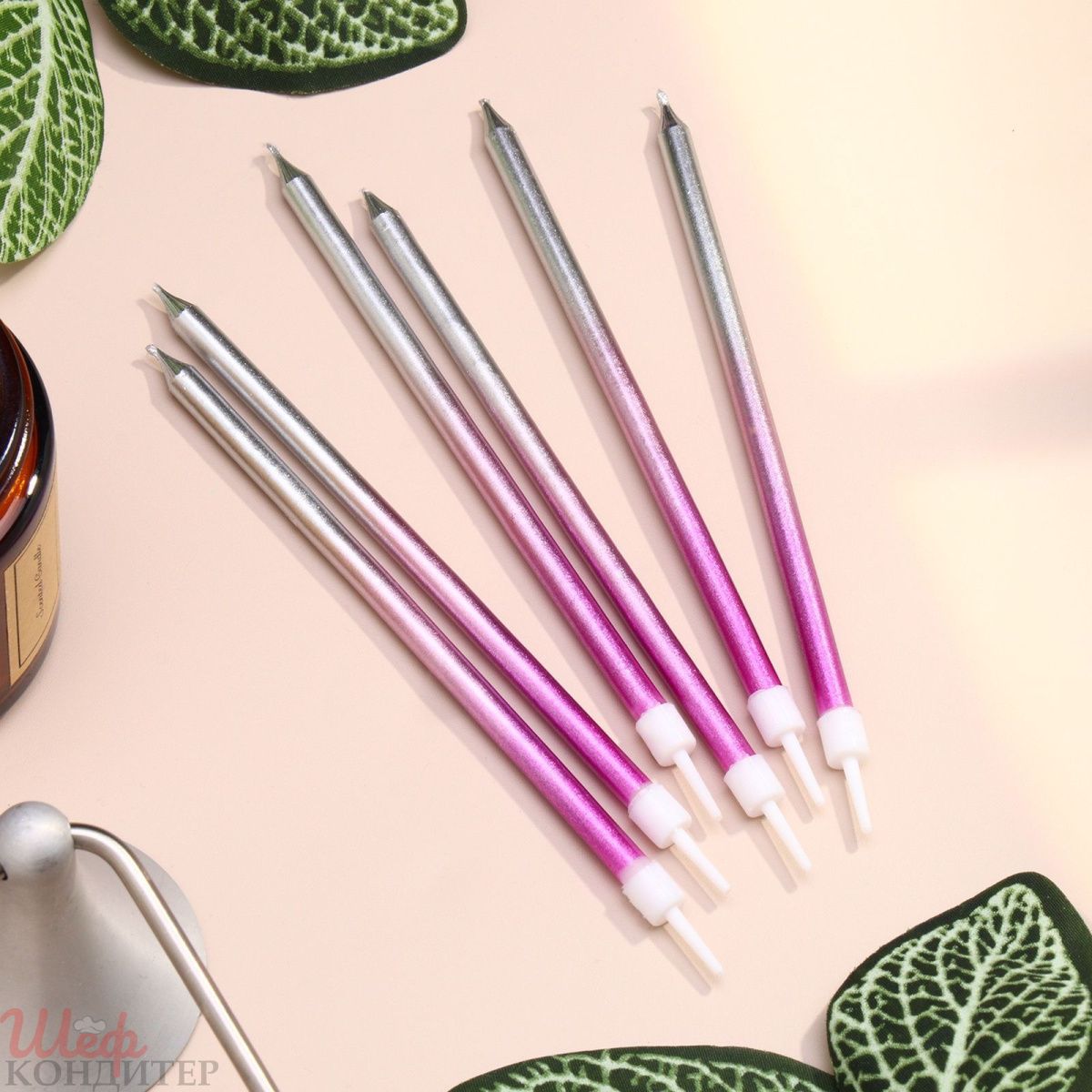 Свечи в торт Градиент фиолетовый-розовый-серебро 13см 6шт - Купить в интернет-магазине Шеф Кондитер