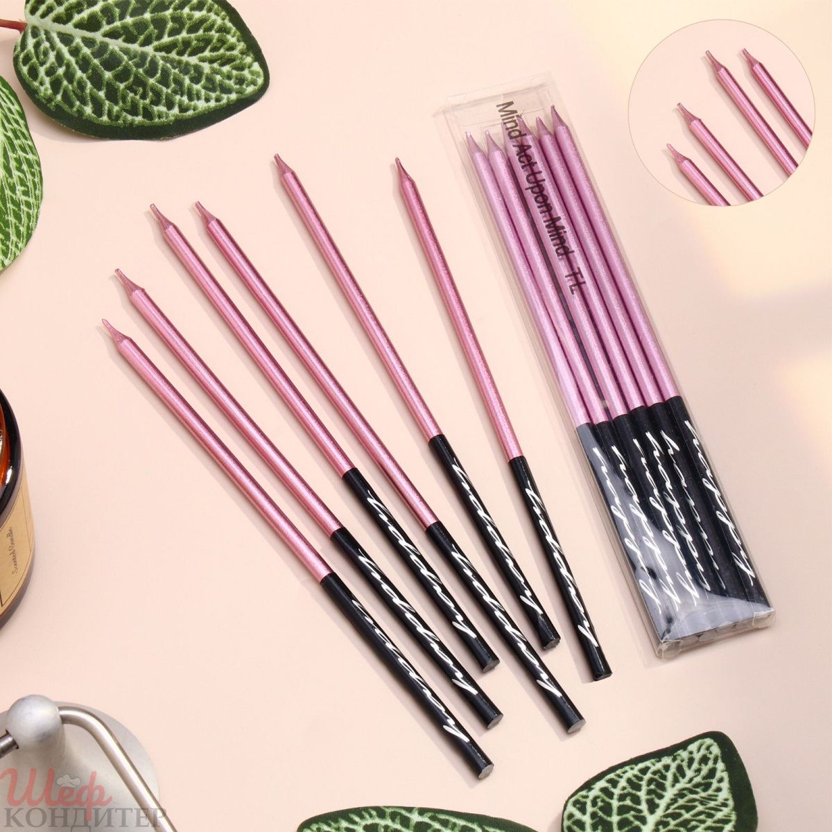 Свечи в торт Розовый с чёрным 14,5см 6шт - Купить в интернет-магазине Шеф Кондитер