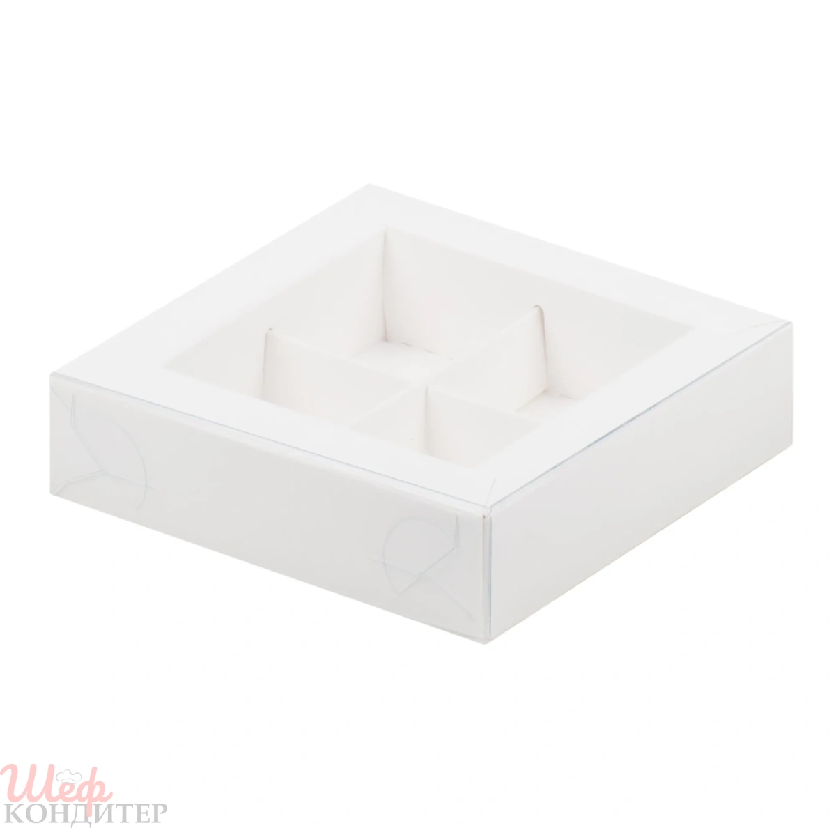 Коробка 120х120х30мм белая для конфет 4шт с пластиковой крышкой - Купить в интернет-магазине Шеф Кондитер