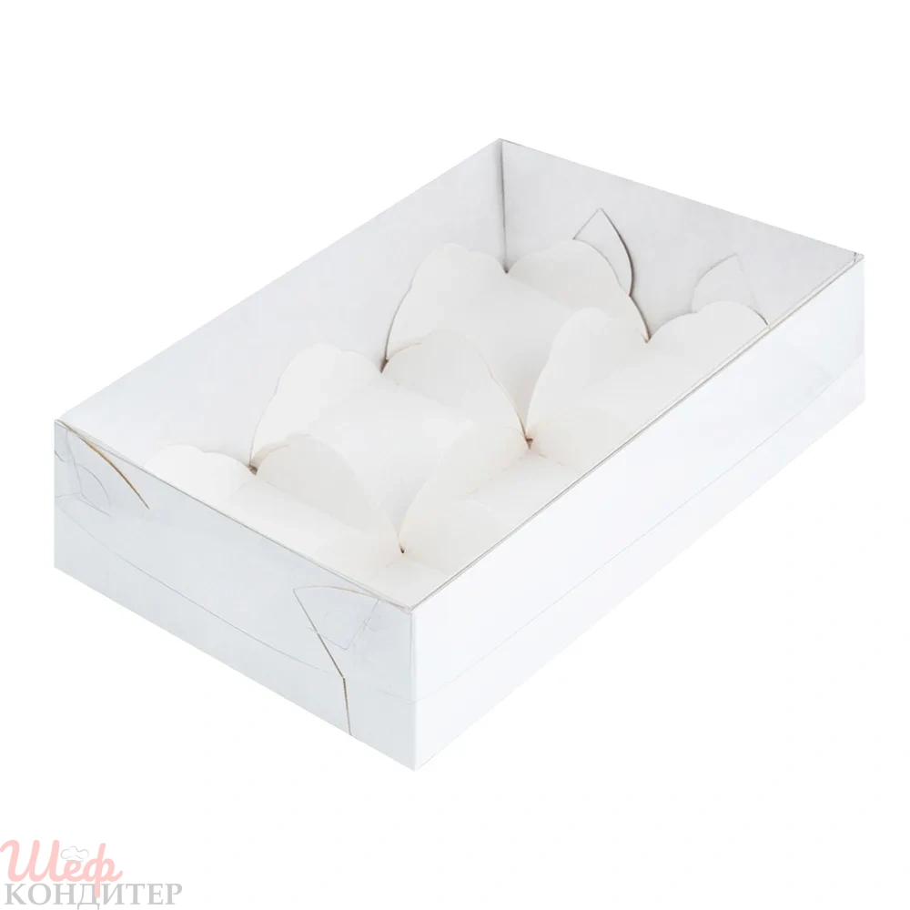 Коробка 175*120*55мм белая с крышкой для 6 моти - Купить в интернет-магазине Шеф Кондитер