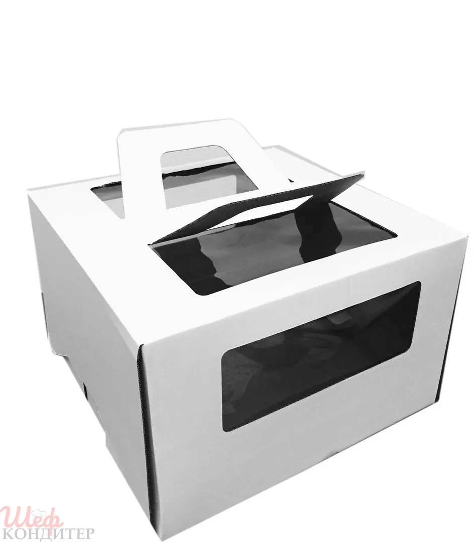 Коробка для торта 240*240*200 с окном с ручками - Купить в интернет-магазине Шеф Кондитер